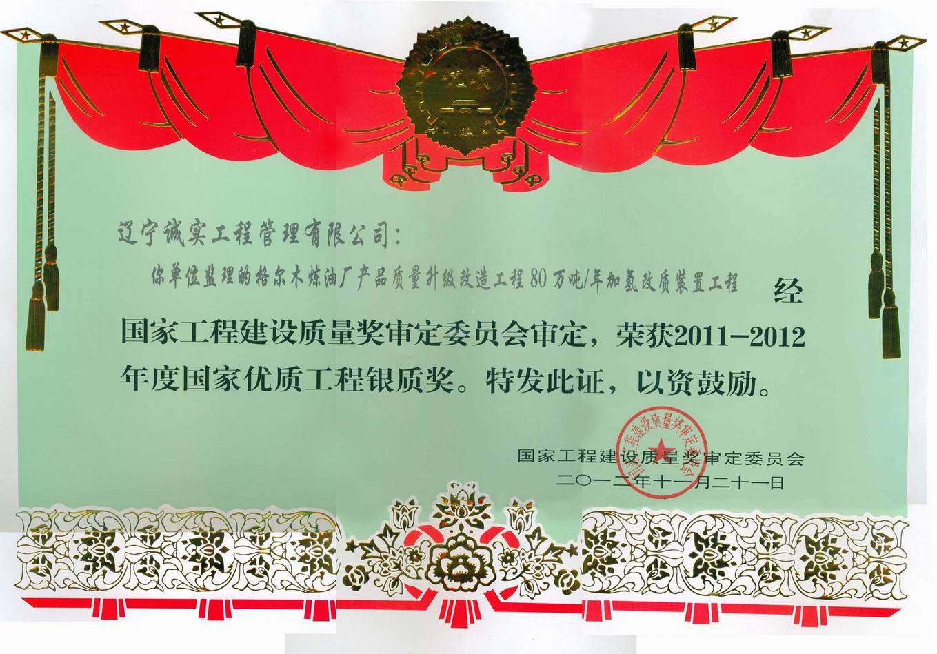 2011-2012年國家優(yōu)質(zhì)工程銀質(zhì)獎(jiǎng)(格爾木煉油廠)