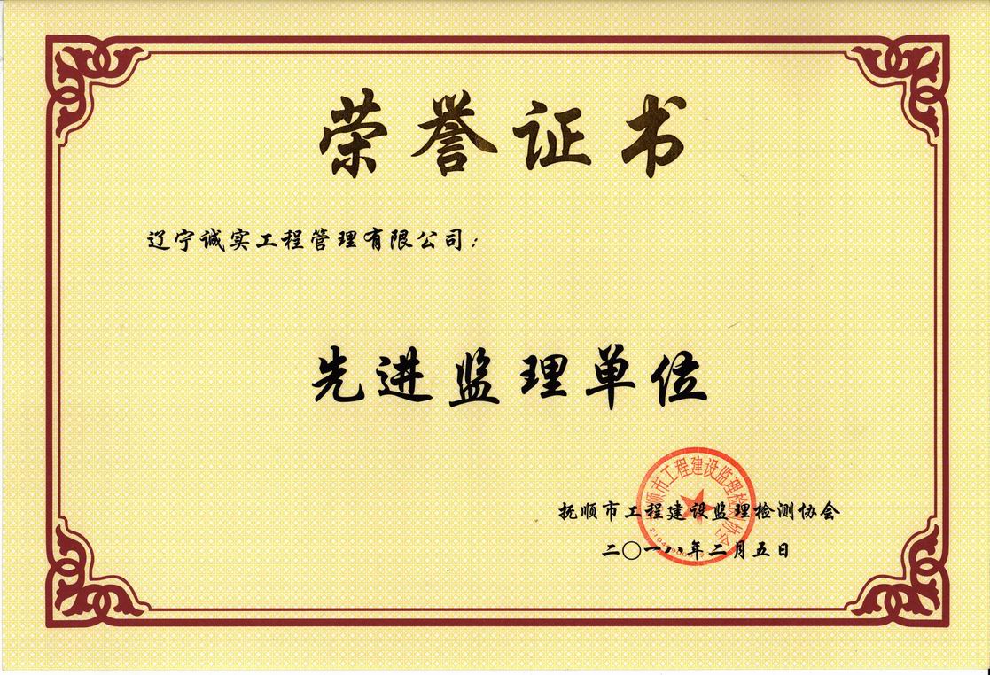 2018年撫順市先進監(jiān)理單位