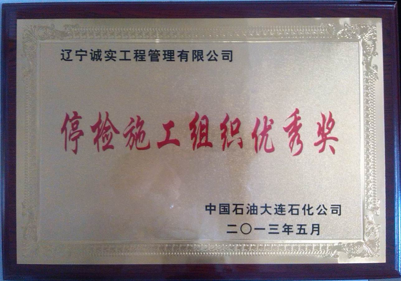 2013年大連石化停檢施工組織優(yōu)秀獎