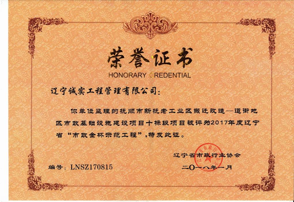 2017年遼寧省“市政金杯示范工程”