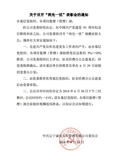 關(guān)于召開(kāi)“兩先一優(yōu)“表彰會(huì)的通知