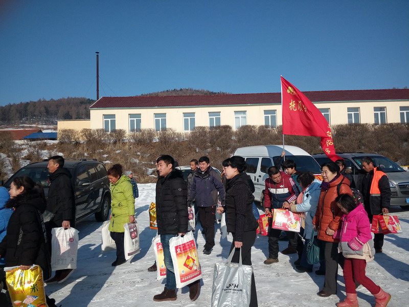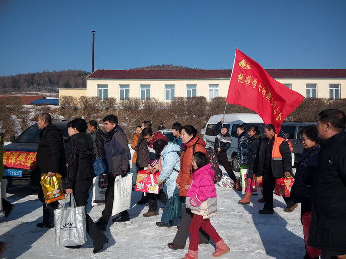 早上9點,滿載著大米、白面、豆油等捐助物的7輛汽車從撫順北站出發(fā),一路向東前往清源甘井子小學。中午10點半,車隊到達清源英額門鎮(zhèn),在當?shù)貙W雷鋒典型聯(lián)合會分會劉先生的帶領之下,車隊于11點到達了清源甘井子小學。車輛剛剛駛入學校,迫不及待的學生以及學生家長們就都出門迎接了出來。找到各自幫扶對象的17位孩子見到了自己的資助人都激動得熱淚盈眶。在甘井子小學高校長的帶領下,大家把資助物品紛紛運到了學校食堂。在食堂把物品授予了這17位孩子,百姓雷鋒們也為他們派發(fā)了新春紅包,并與他們進行了親切的交流,目的是鼓勵這17位家庭困難的學生好好學習,勇敢的面對生活。