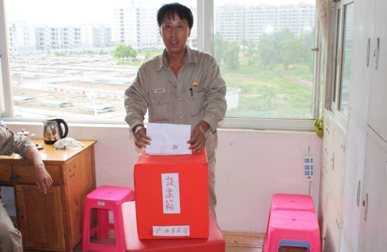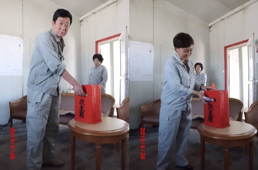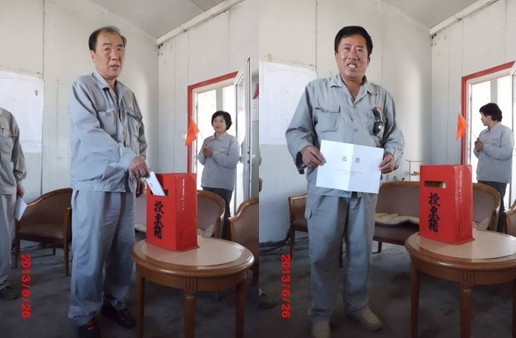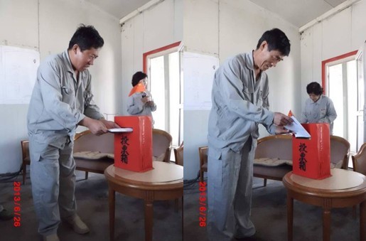 內(nèi)蒙古慶華集團(tuán)視頻會(huì)場(chǎng)的黨員在投票選舉