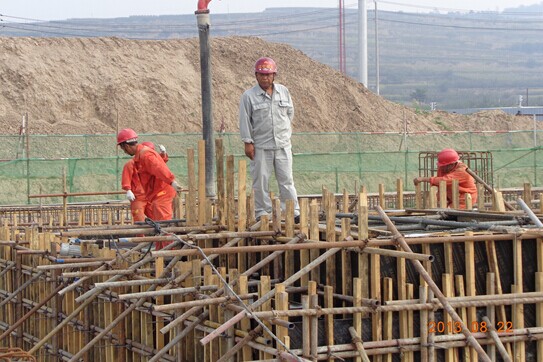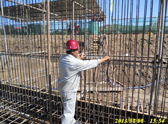 土建監(jiān)理現(xiàn)場檢查壓縮機廠房基礎(chǔ)環(huán)墻鋼筋綁扎質(zhì)量